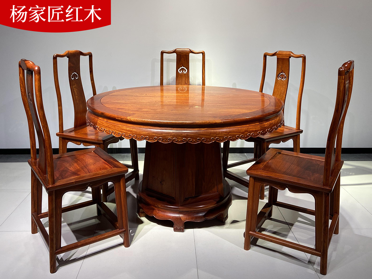 缅甸花梨木大果紫檀明式圆餐桌