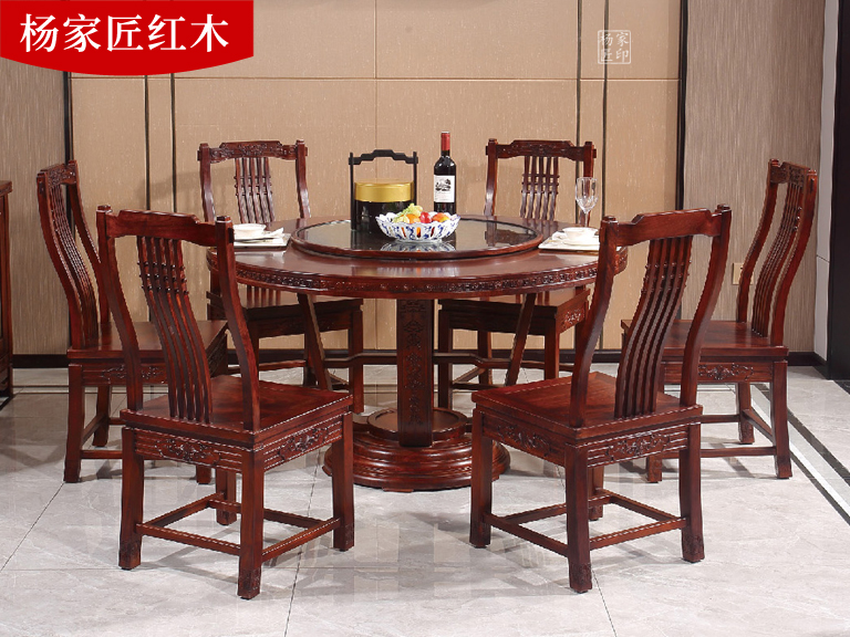 刺猬紫檀花好月圆圆餐桌圆台