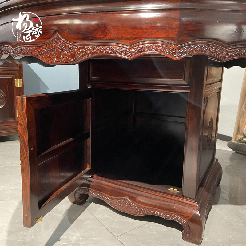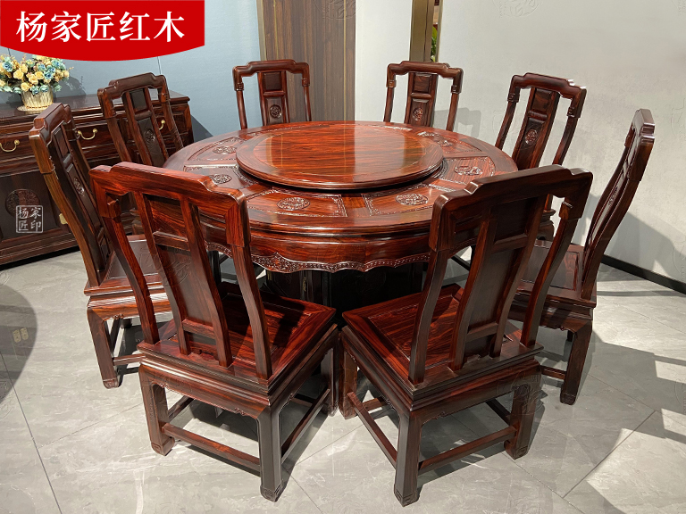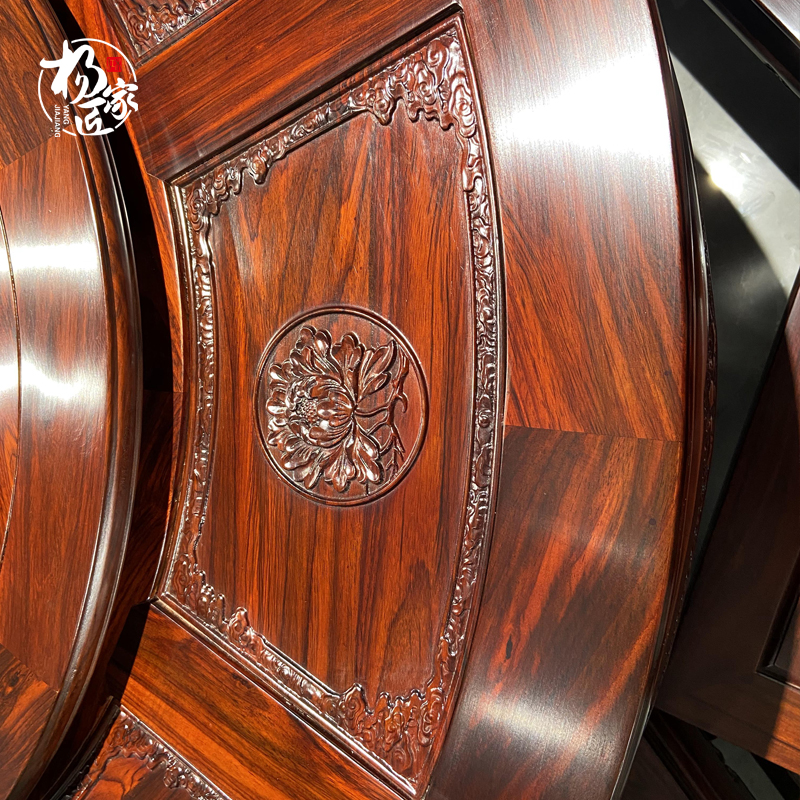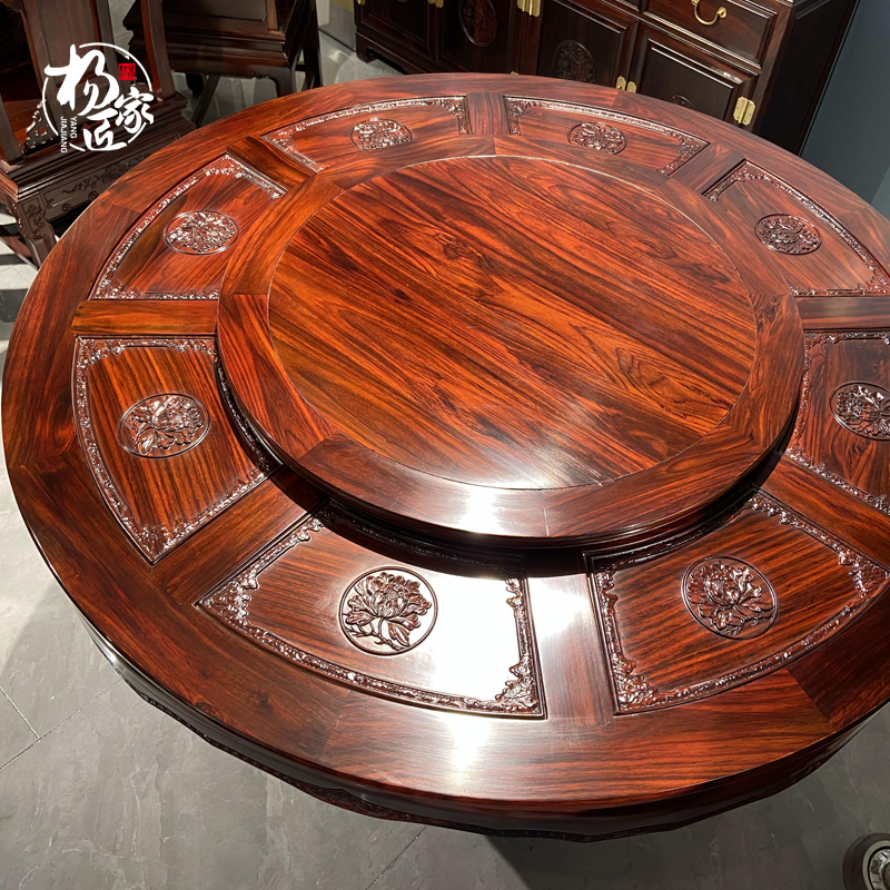 印尼黑酸枝阔叶黄檀雕花圆桌圆餐桌