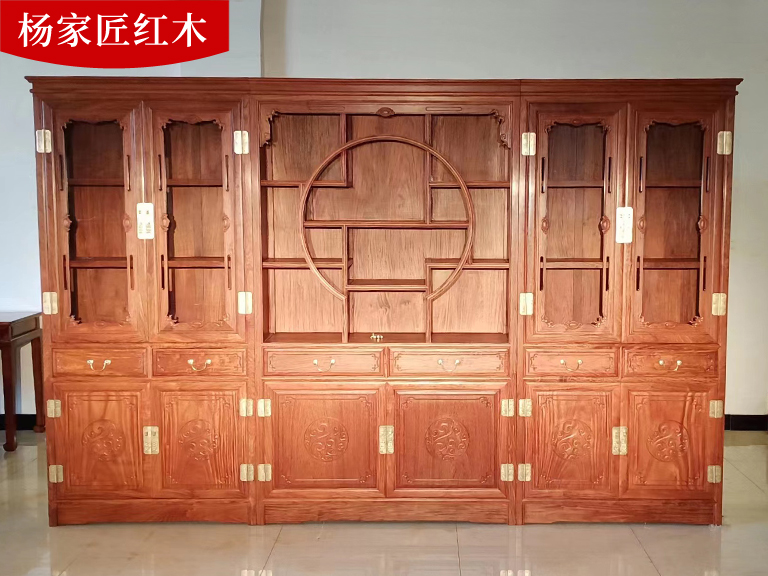 缅甸花梨木大果紫檀三组合书柜博古架
